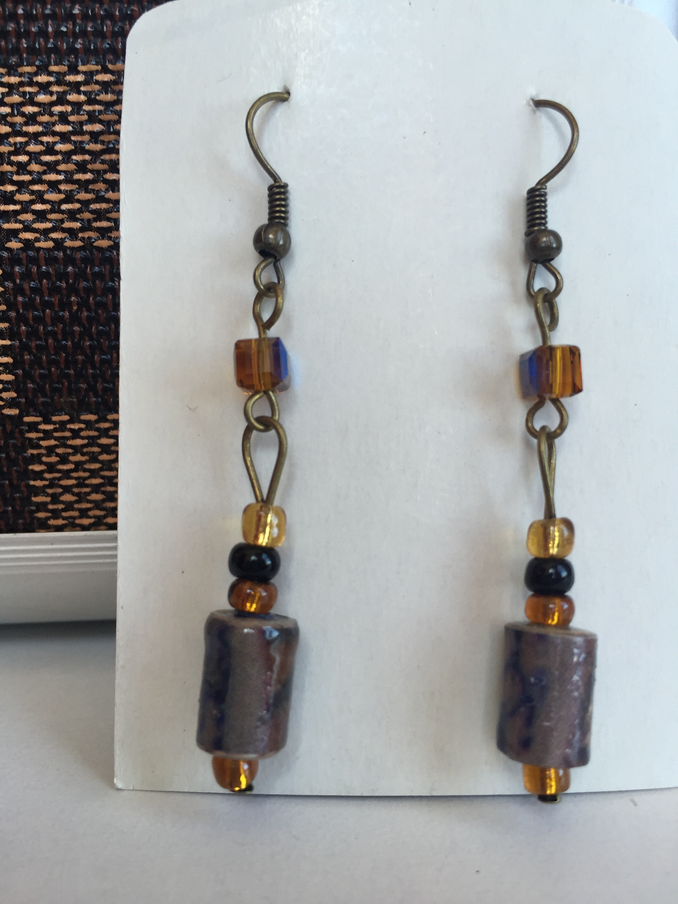 Paper Beads Earrings - Brown Roll - EAR 00401